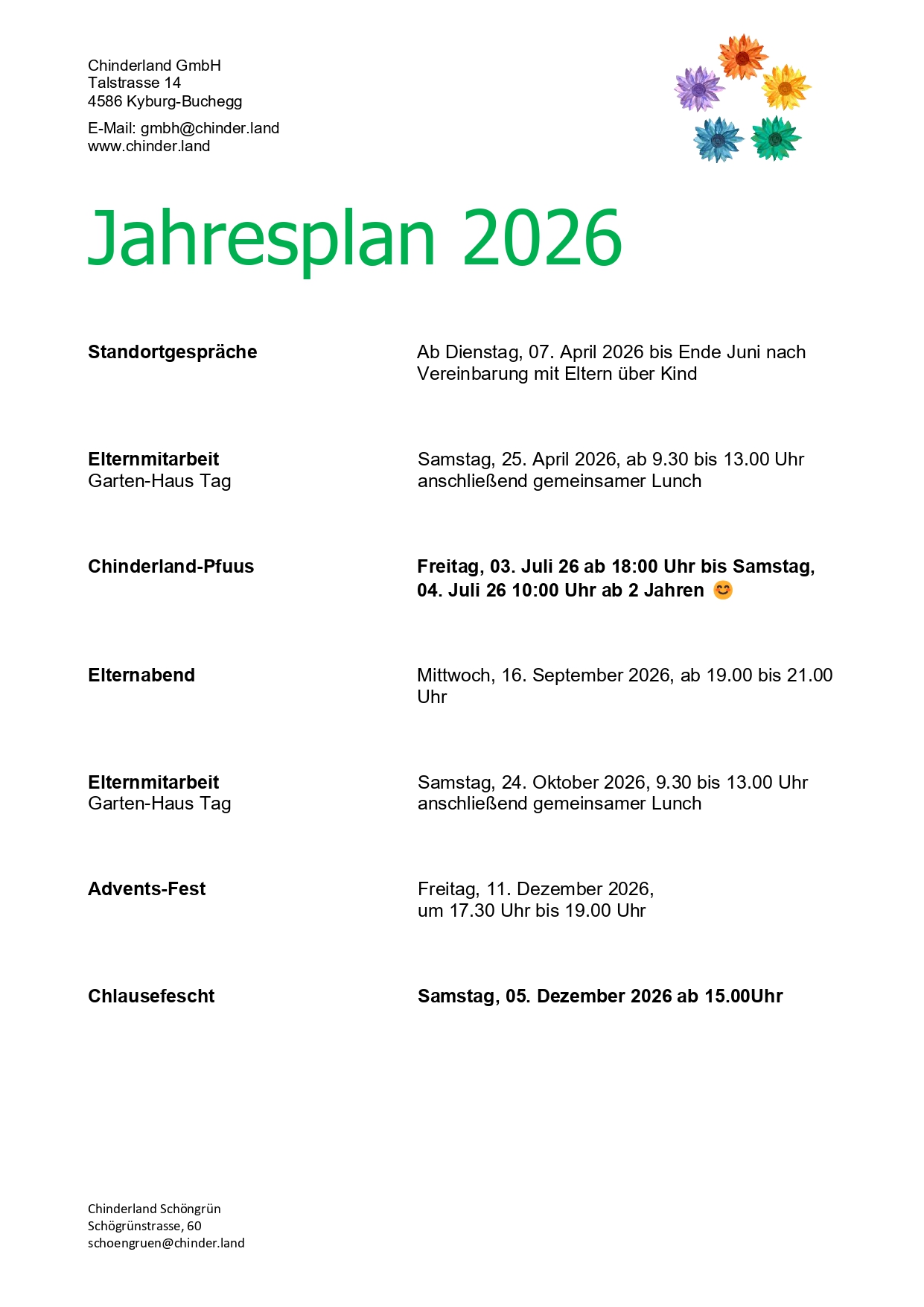 Für die Anmeldung und Warteliste könnt ihr euch hier anmelden. Das Chinderland arbeitet mit der Software von Leoba zusammen. Bei Fragen könnt ihr uns gerne kontaktieren
