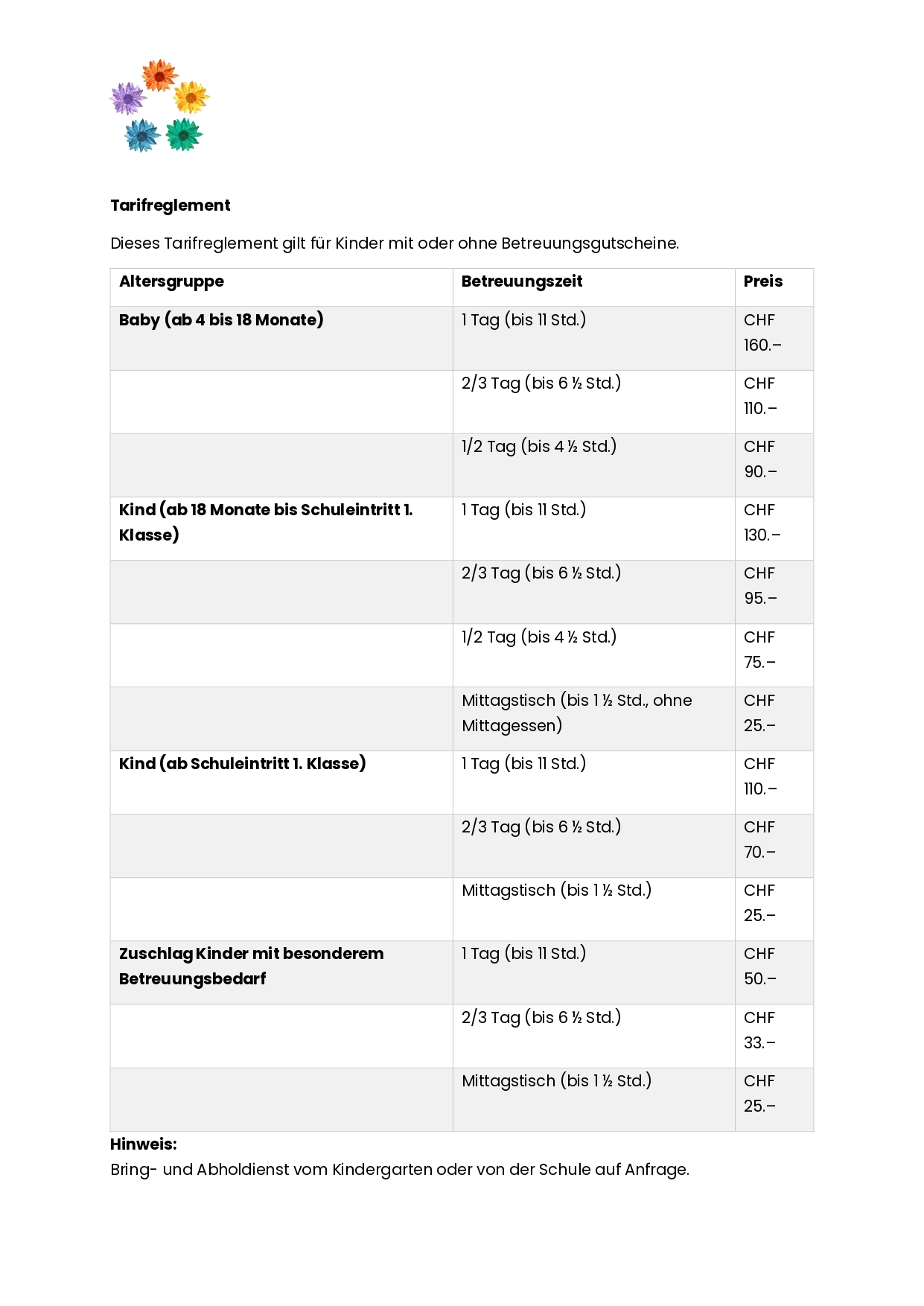 - Wir betreuen Kinder im Alter von 3 Monaten bis Ende Kindergarten oder bis Ende Schulzeit in altersgemischten Gruppen und familiärer Atmosphäre.
